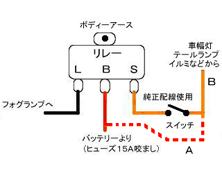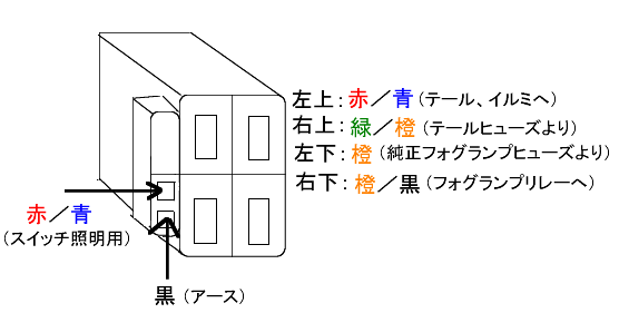 | その他 | ポジション(テール)と連動させないと、厳密には車検に通りません。つまりフォグだけONにならないようにする必要があります。 |